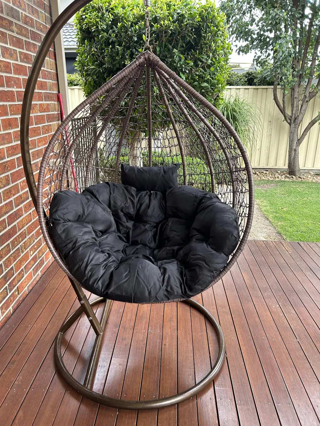 Very happy with the egg chair my daughter loves it cushion could be a bit thicker but overall very happy